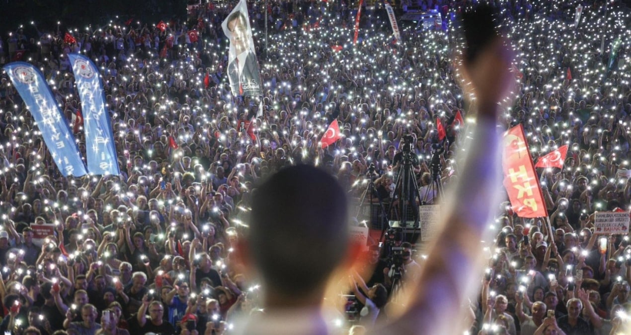 CHP lideri Özgür Özel, Zeytinburnu meydanını dolduran insanlara teşekkür etti. Özel, CHP’li belediyeler hakkında süren soruşturmalar ve son olarak CHP İstanbul İl Başkanlığı yönetimine atanan kayyum üzerinden Adalet Bakanı Yılmaz Tunç’a yüklendi…
