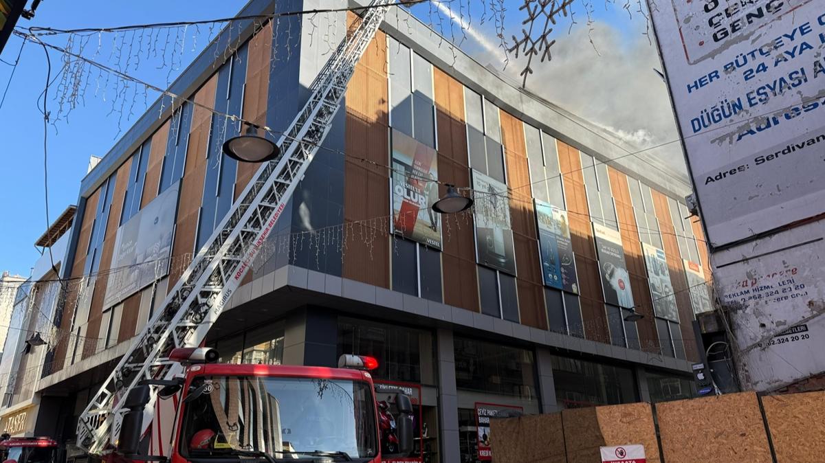 Ömerağa Mahallesi İstiklal Caddesi’ndeki 4 katlı iş merkezinin çatı katında bulunan depoda yangın çıktı.